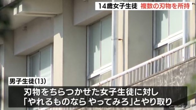 女子中学生「刃物チラッ」男子「やれるもんならやってみろ!」女子「グサッ」男子「えっ」