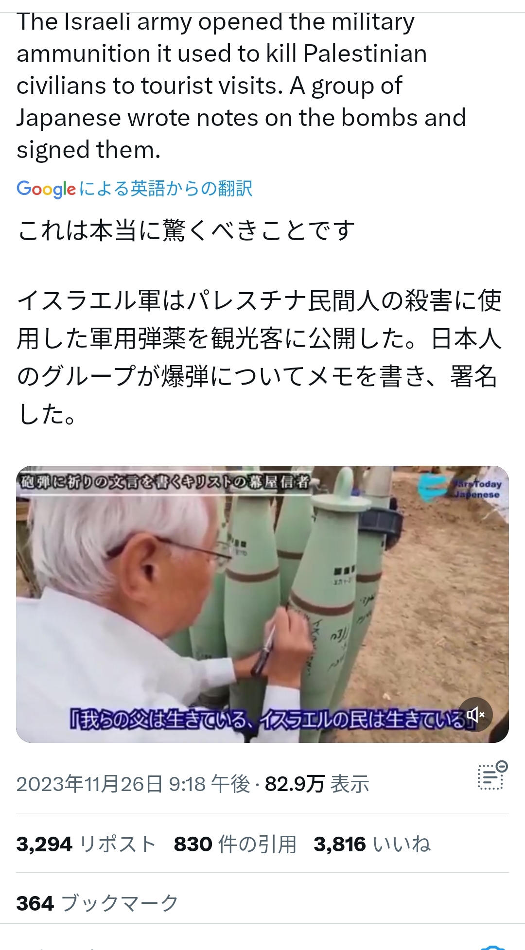 [feedzy-rss feeds="https://itainews.com/index.rdf" max="7" feed_title="no" meta="yes" summary="no" thumb="yes" size="50"] イスラエルからガザ地区に撃ち込まれる砲弾に「寄せ書き」する日本人集団、世界中で報道されてしまう [237216734] この記事を読む ← 【Fラン大学大喜び】岸田「3人以上の多子世帯の大学授業料を無償化」※子供の数え方は検討中 【おパヨ速報】 ツイ民「KADOKAWAがトランスヘイト本を出すので、販売抗議デモします」 [593349633] →