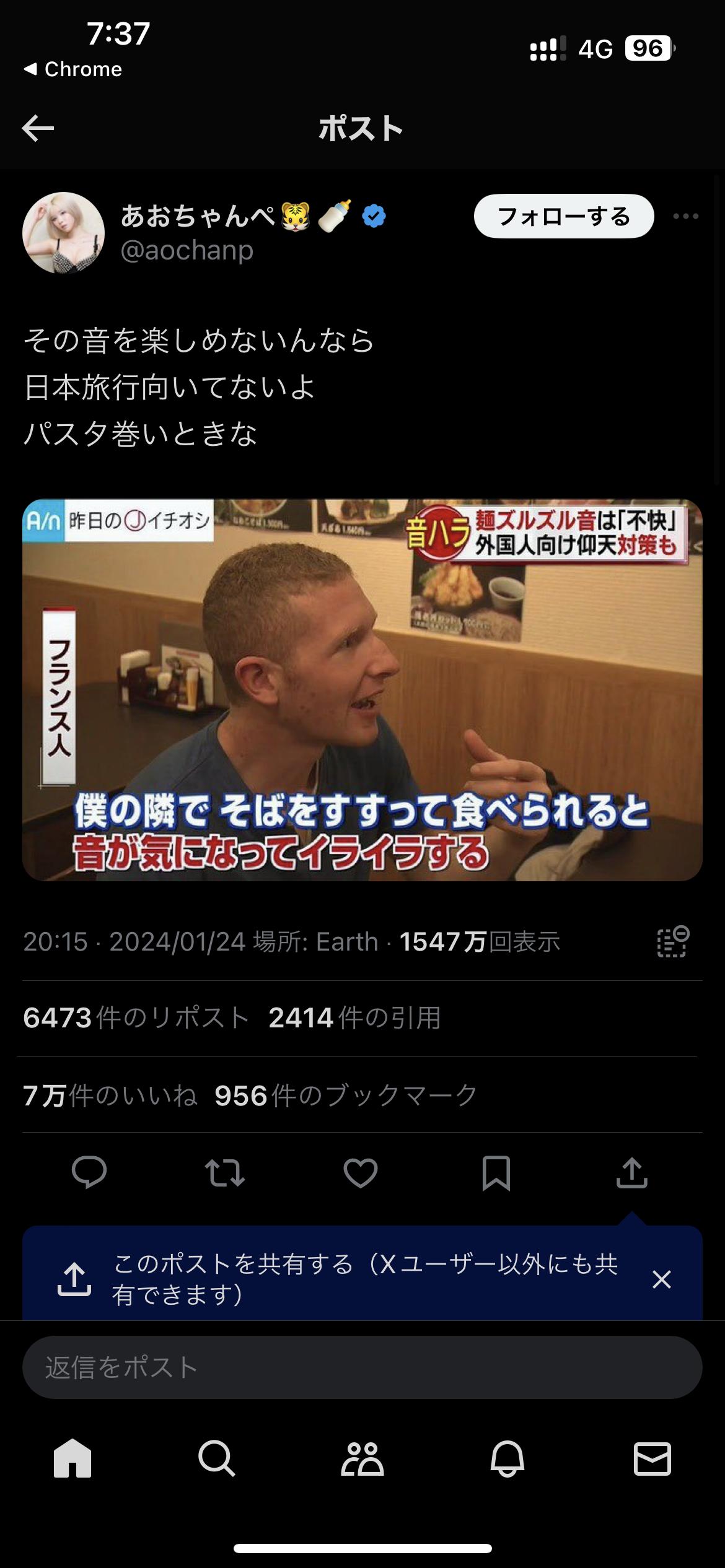[feedzy-rss feeds="https://itainews.com/index.rdf" max="7" feed_title="no" meta="yes" summary="no" thumb="yes" size="50"] 訪日フランス人「麺を音出してすすられると不快」 日本人「嫌なら日本に来るな!(7万いいね)」 ★2 [271912485] この記事を読む ← 【画像】「この小さな札は何?」 サイゼリヤの注文方法が激変! 手書きからスマホ使用へ [837857943] 東京大学「千葉県で大地震が起きる。都民は備えよ」何を? →
