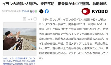 イラン当局「ライシ大統領が乗ったヘリコプターは墜落した」