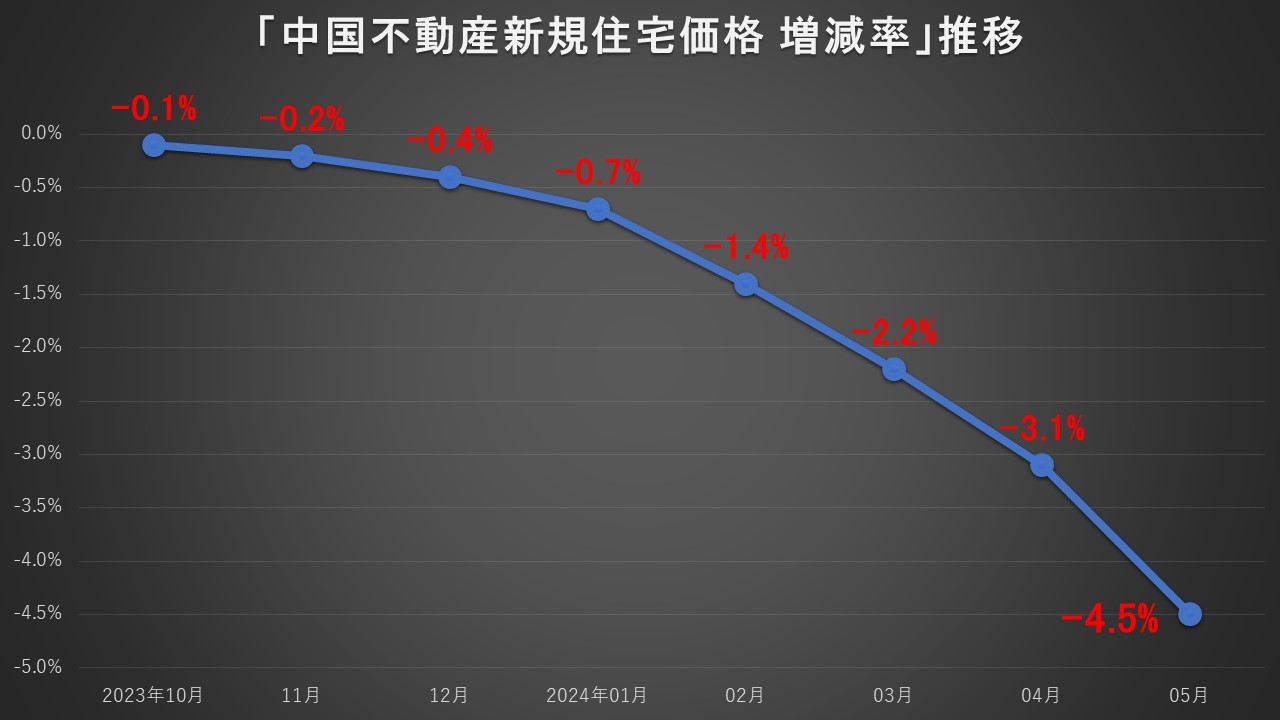 中国「不動産市場」全く回復しない。右肩が下がりっ放し、希望は見えません。